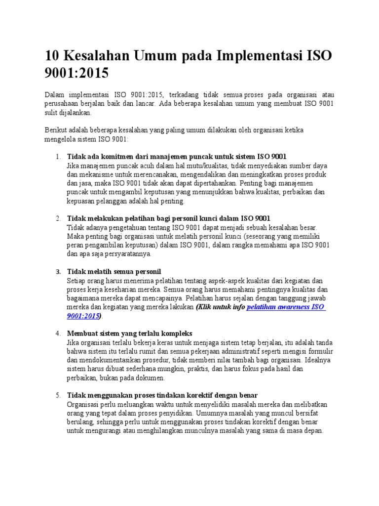 10 Kesalahan Umum Pada Implementasi Iso 9001 2015