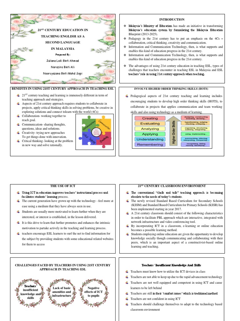 21st Century Education Handout Educational Technology Teachers