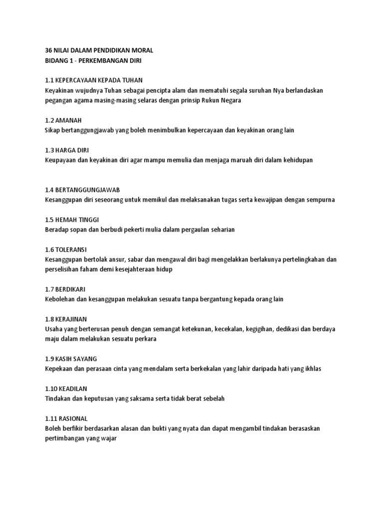 Laman Blog Pendidikan Moral Kata Kunci Untuk 36 Nilai Murni