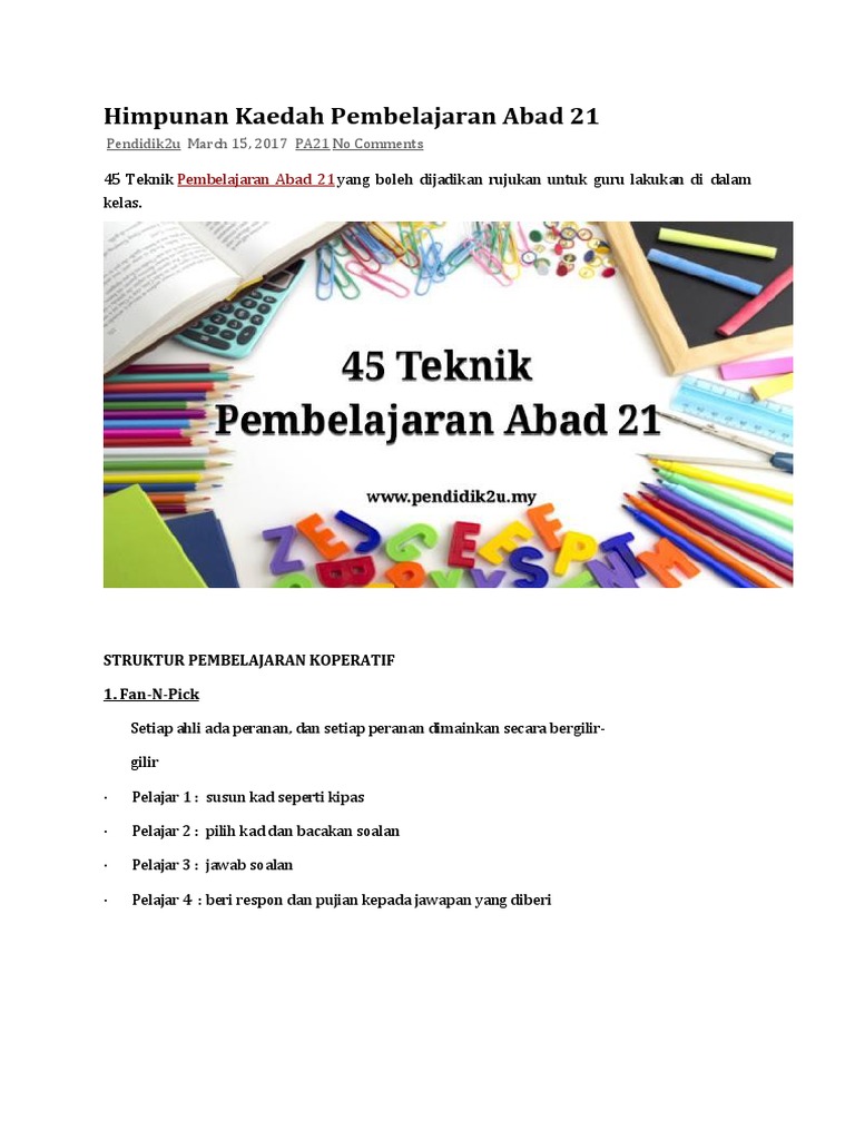Doc Teknik Pembelajaran Abad 21 Yang Boleh Dijadikan Rujukan Untuk Guru Lakukan Di Dalam Kelas Zulhilmi Kias Academia Edu