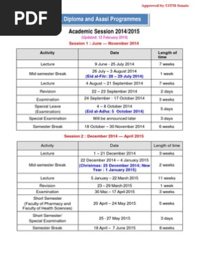 Academic Sessions 2014 2015 Uitm Academic Term Titles