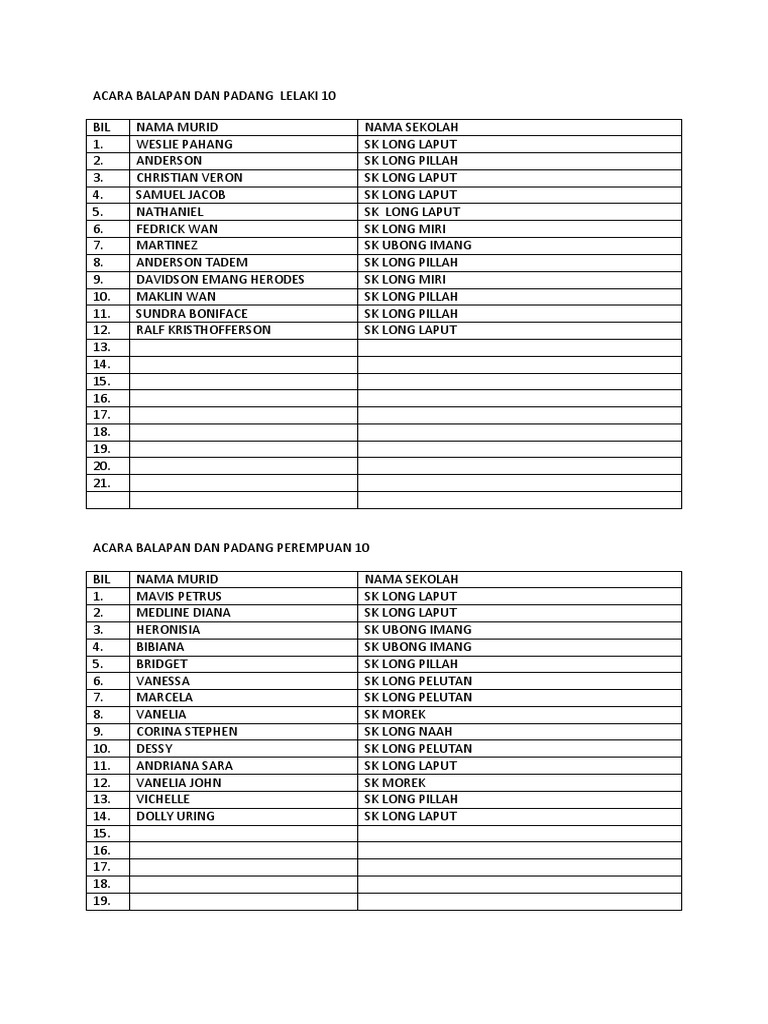 Borang Keputusan Rasmi Acara Balapan Dan Padang Xlsx Document