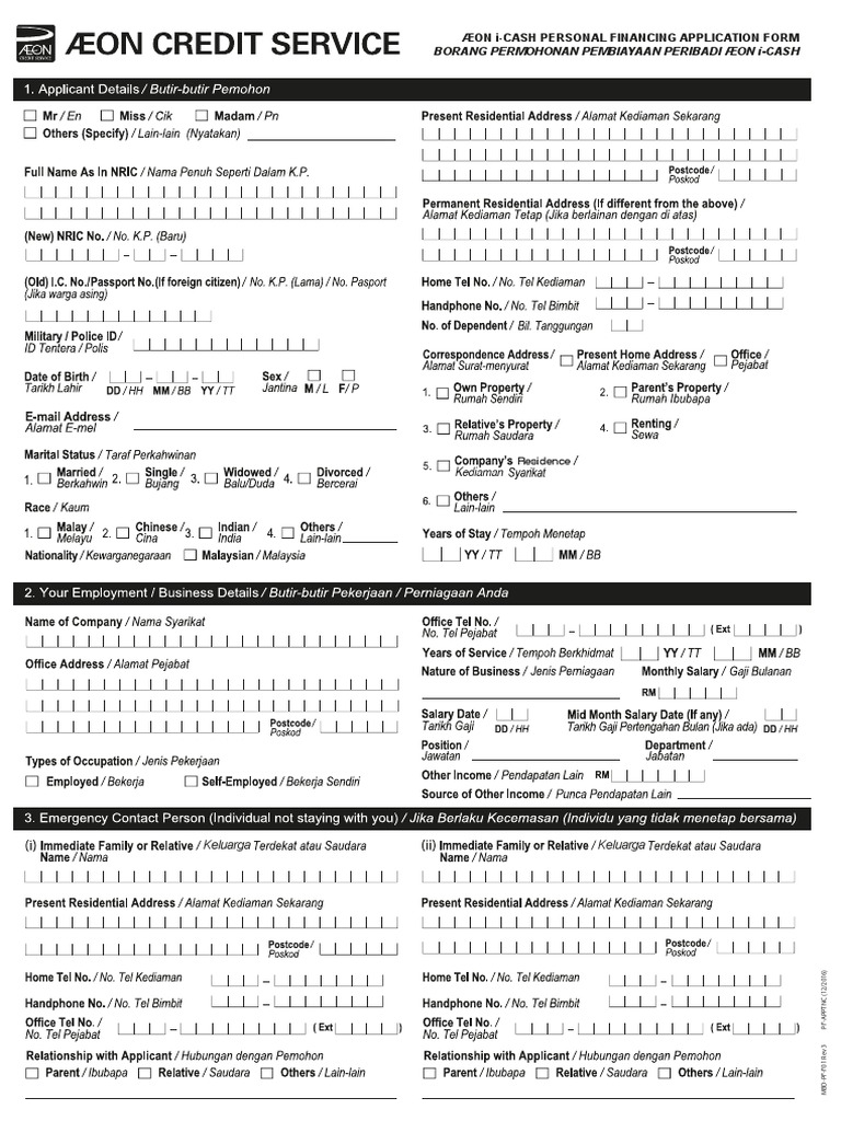 Pinjaman peribadi aeon credit menawarkan pinjaman segera hingga rm100 000 tertakluk syarat penilaian tempoh kelulusan 1 3 hari tanpa penjamin. Kenapa pinjaman peribadi aeon credit. Customers are required to sign the sales purchase agreement at the respective aeon credit s counter and funds will be transferred to either savings or current account of the bank selected by the customer alternatively customer can opt for the funds to be disbursed via the aeon credit prepaid mastercard for up to rm10 000 and withdraw at any nearest aeon credit s branches using the. Ciri ciri yang ditawarkan oleh skim pinjaman ini berserta syarat kelayakan yang tidak begitu ketat menjadikan aeon icash salah satu pelan pinjaman peribadi yang sering dimohon oleh rakyat malaysia.