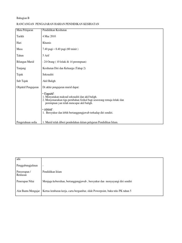 Latihan Pendidikan Kesihatan Tahun 4 Akil Baligh