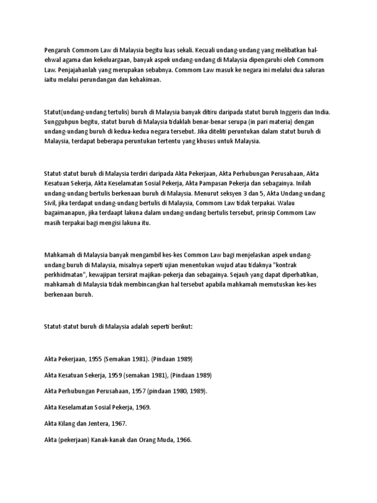 Undang Undang Buruh Dan Perlindungan Pekerja Satu Perjanjian Tanpa Balasan Bukanlah Satu Kontrak Pdf Document
