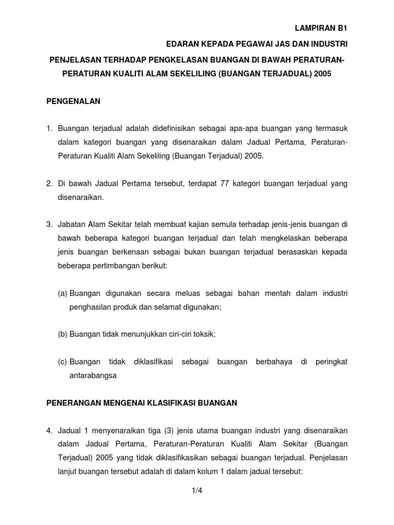 Pdf Peraturan Kualiti Alam Sekeliling Buangan Terjadual 2005 P U A Anis Nabilah Academia Edu