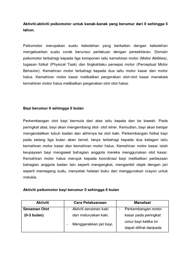 Aktiviti Aktiviti Psikomotor Untuk Kanak Kanak