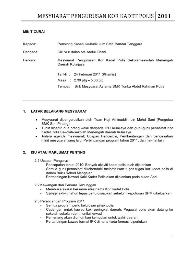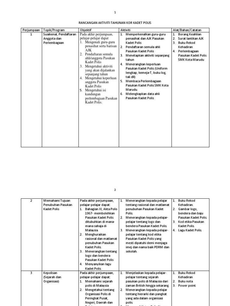 Doc Rancangan Aktiviti Tahunan Pasukan Kadet Polis C Lynn Ksl Academia Edu