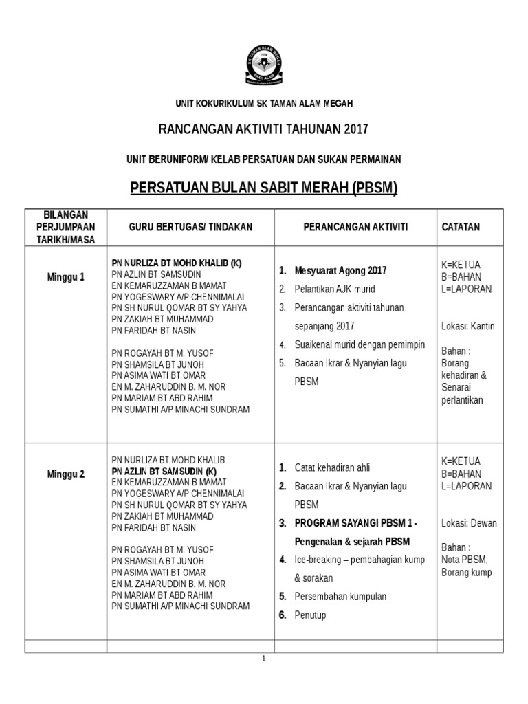 Cadangan Perancangan Aktiviti Pbsm Download Docx
