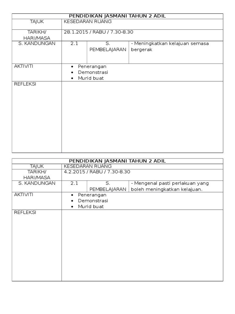 Pdf Rancangan Pengajaran Harian Pendidikan Jasmani Kssr Tahun 2 Rod Zie Academia Edu