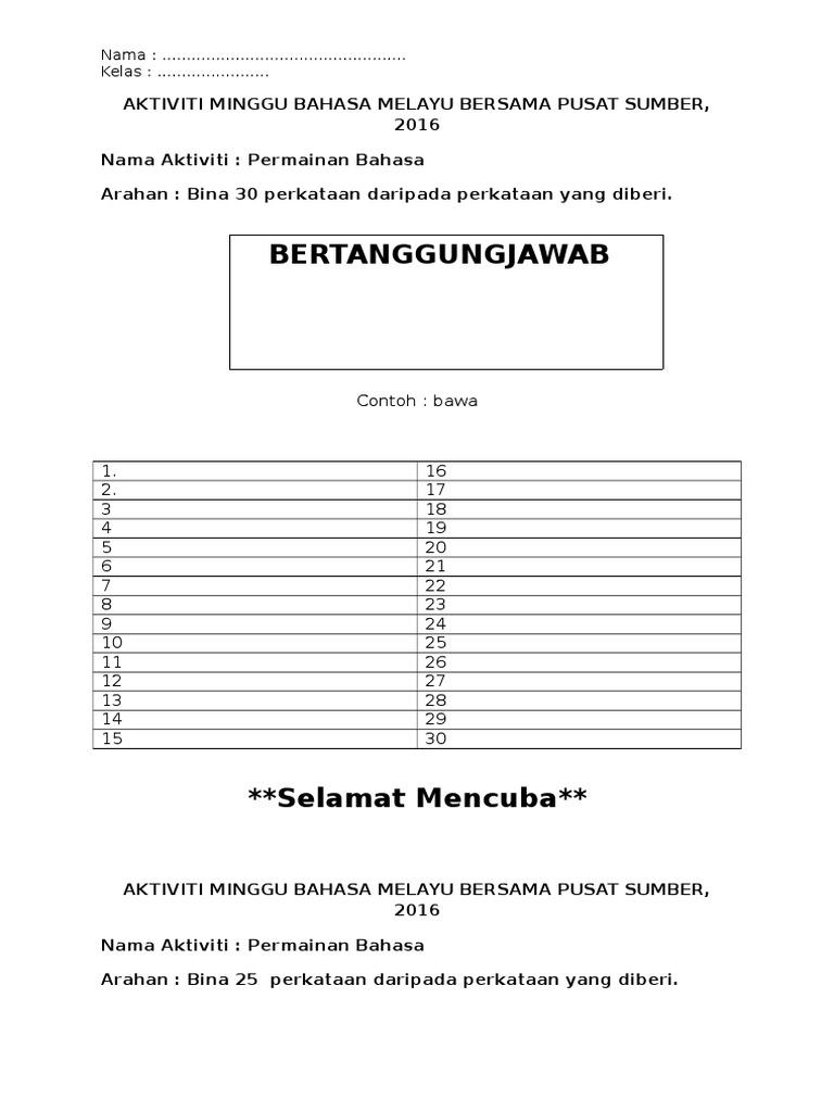2 matlamat meningkatkan penguasaan murid dalam kemahiran mendengar bertutur membaca dan menulis. Ia bukan setakat seronok tetapi juga berasaskan kemahiran berfikir aras tinggi yang melibatkan kemahiran kognitif murid dalam menyelesaikan soalan yang terdapat dalam. Contoh aktiviti permainan bahasa admin april 12 2017 dalam pdp atau pdpc sekarang guru perlu kreatif melaksanakan pelbagai cara kaedah dan teknik pengajaran bagi membolehkan sesuatu kandungan pembelajaran dapat dikuasai oleh murid sebaik mungkin. Secara berkumpulan permainan bahasa boleh dilaksanakan dalam kumpulan kumpulan kecil.
