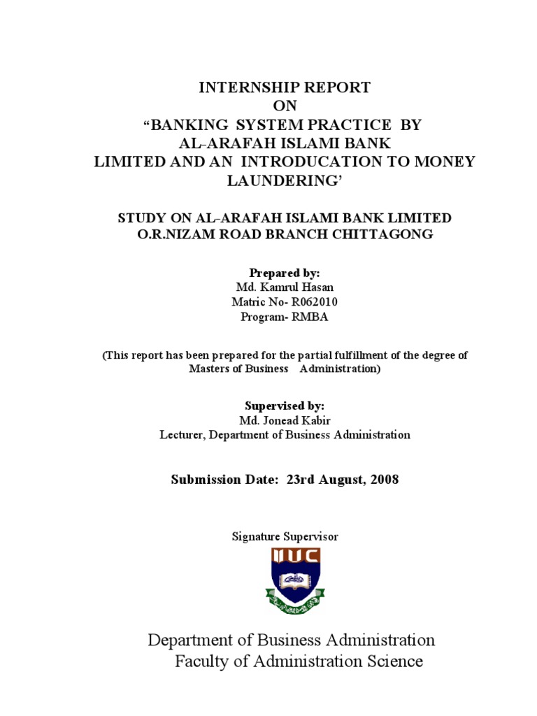 Internship Report On Al Arafah Islami Bank Ltd Msrblog