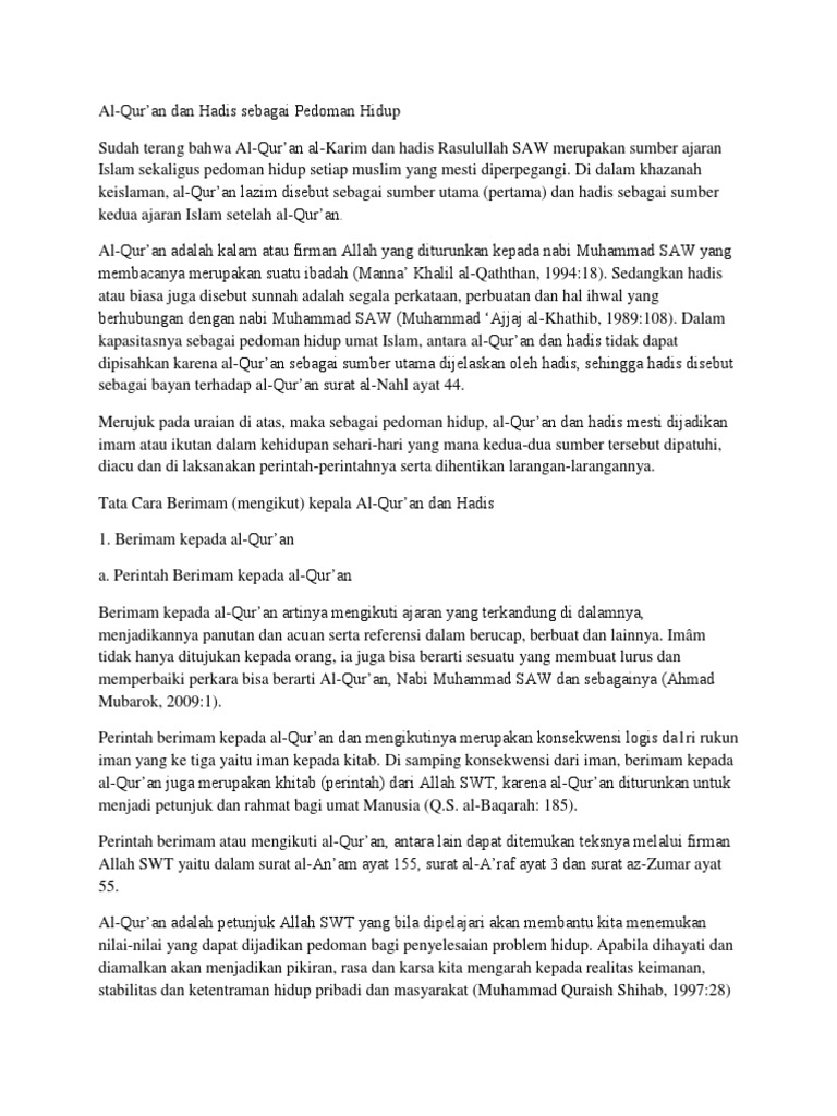 Al Qur An Dan Hadis Sebagai Pedoman Hidup