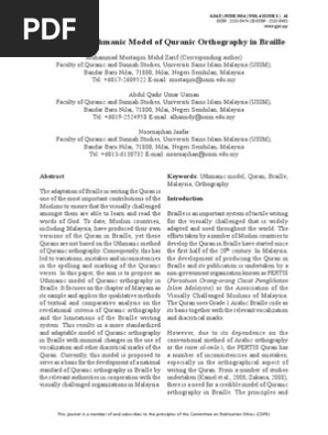 Pdf Towards An Uthmanic Model Of Quranic Orthography In Braille Semantic Scholar