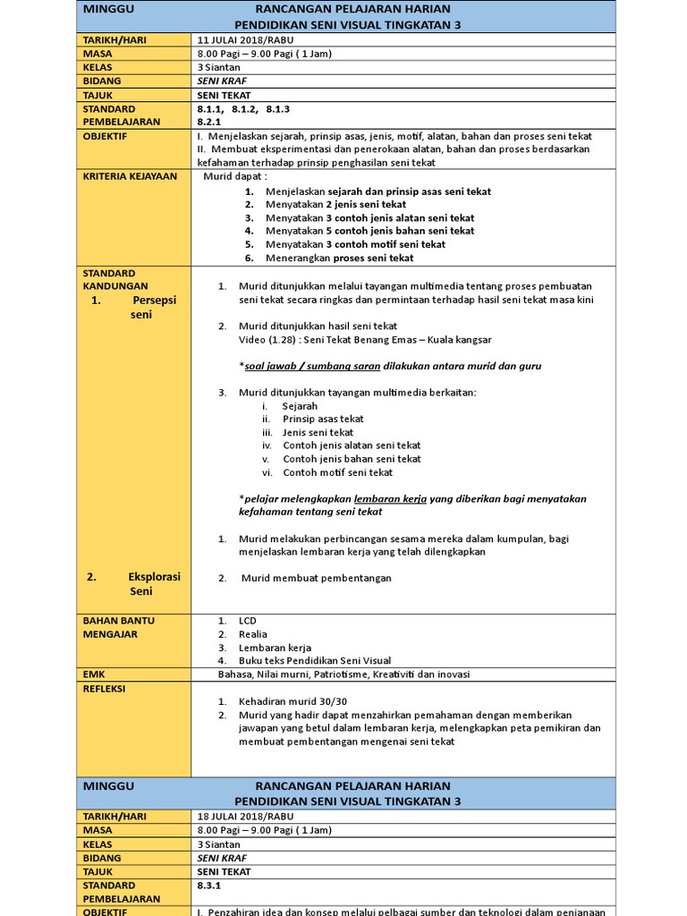 Pendidikan Seni Visual Seni Kraf Tingkatan 3 Lessons Tes Teach