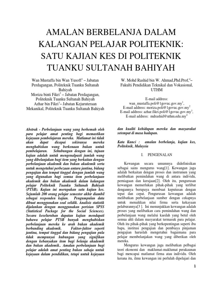 Amalan Berbelanja Dalam Kalangan Pelajar