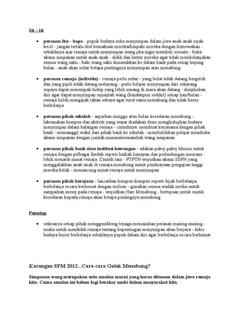 Contoh Karangan Spm Amalan Berjimat Cermat