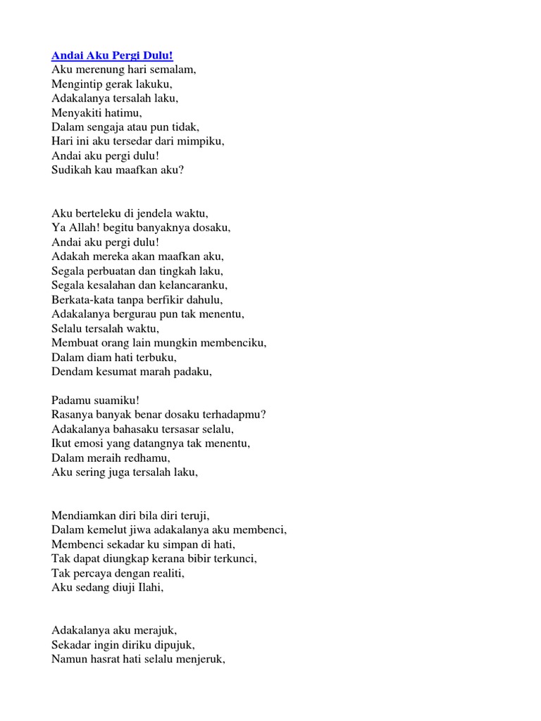 Andai Aku Pergi Dulu Maafkan Aku