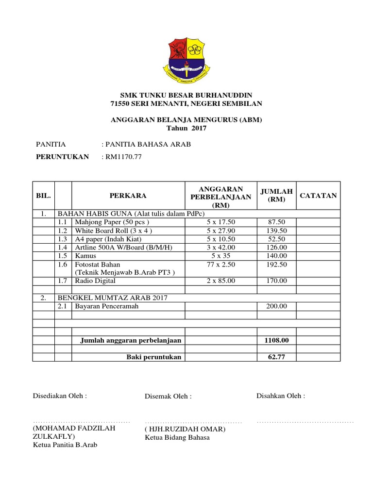 Anggaran Perbelanjaan Panitia Sains Pdf Document