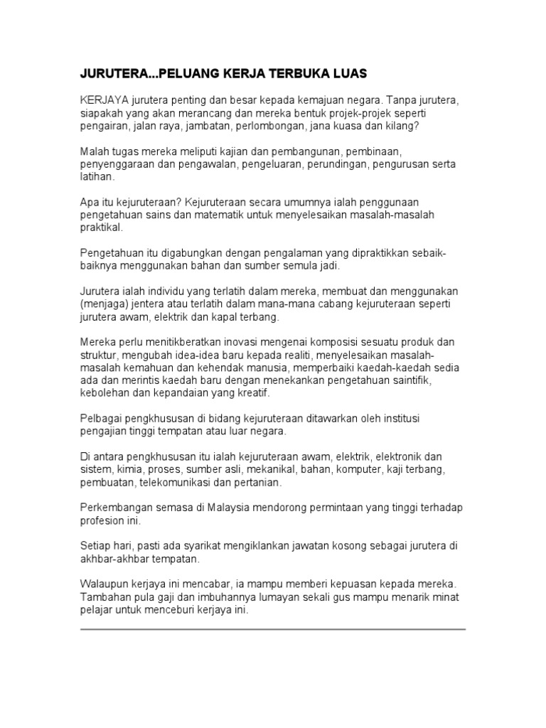 Jurutera Peluang Kerja Terbuka Luas Ciri Ciri Peribadi Yang Diperlukan
