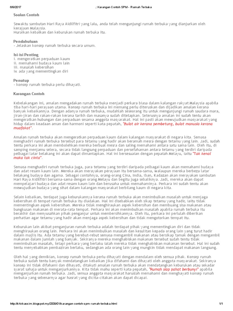 Laman Bahasa Melayu Spm Karangan Kepetingan Rumah Terbuka Di Malaysia
