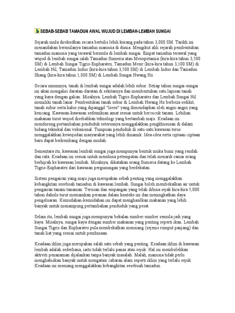 Sebab Sebab Tamadun Awal Wujud Di Lembah Lembah Sungai