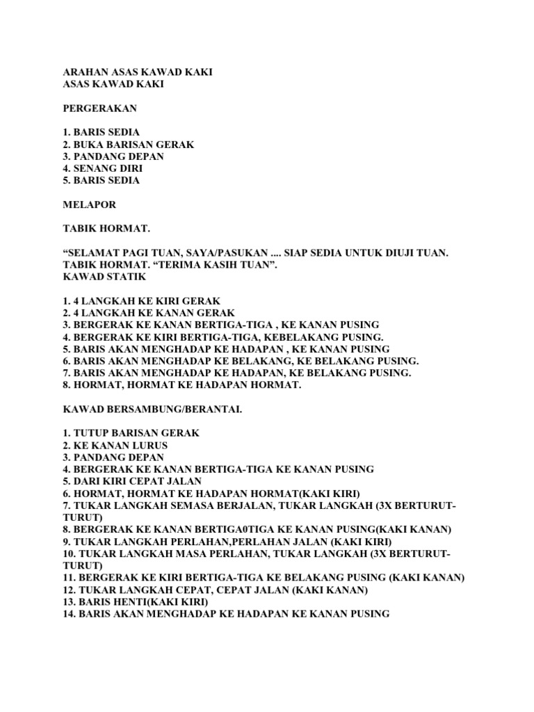 Arahan Kawad Statik Docx Arahan Kawad Statik Masuk Baris U201cdengar Sini Semua Sekali Apabila Mendapat Hukuman Tiga Barisan Di Hadapan Saya Gerak Skuad Course Hero