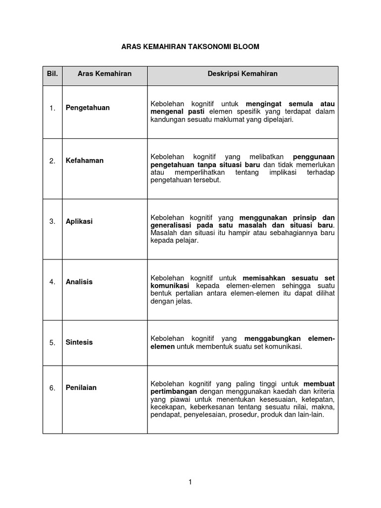 Falahiah Kenali Aras Kognitif Taksonomi Bloom Dan Contoh Soalan Setiap Aras Sejarah Pdf Document