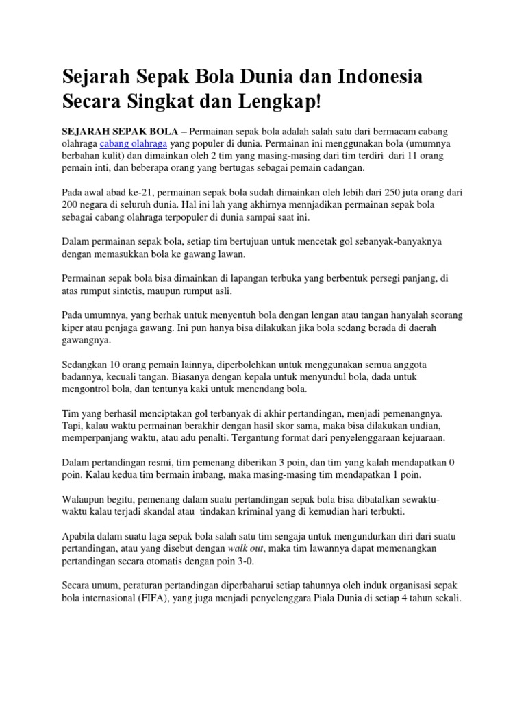 Sejarah Sepak Bola Dunia Dan Indonesia Lengkap