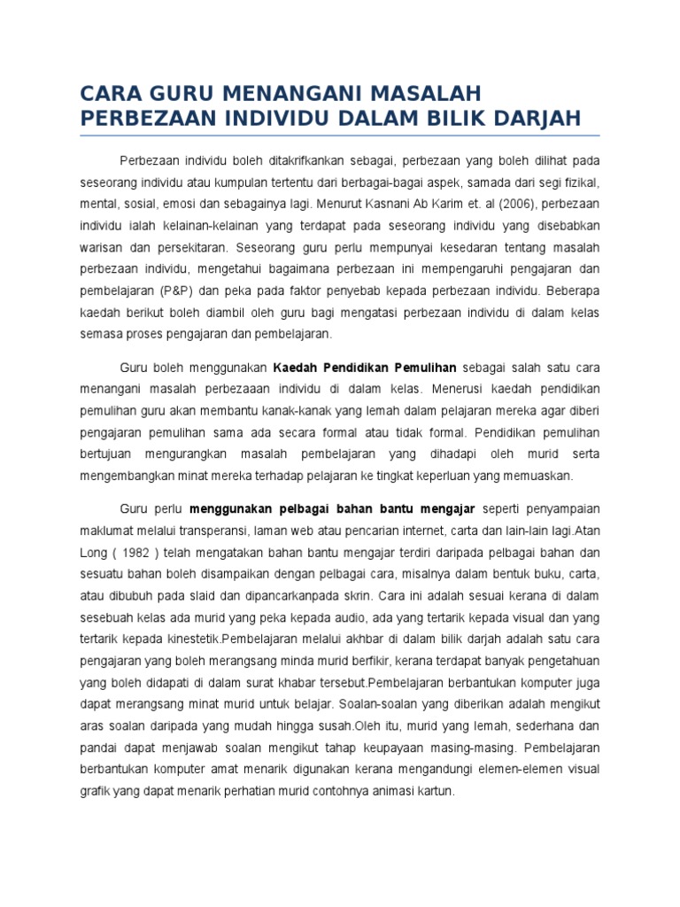 Cara Guru Menangani Masalah Perbezaan Individu Dalam Bilik Darjah Edited