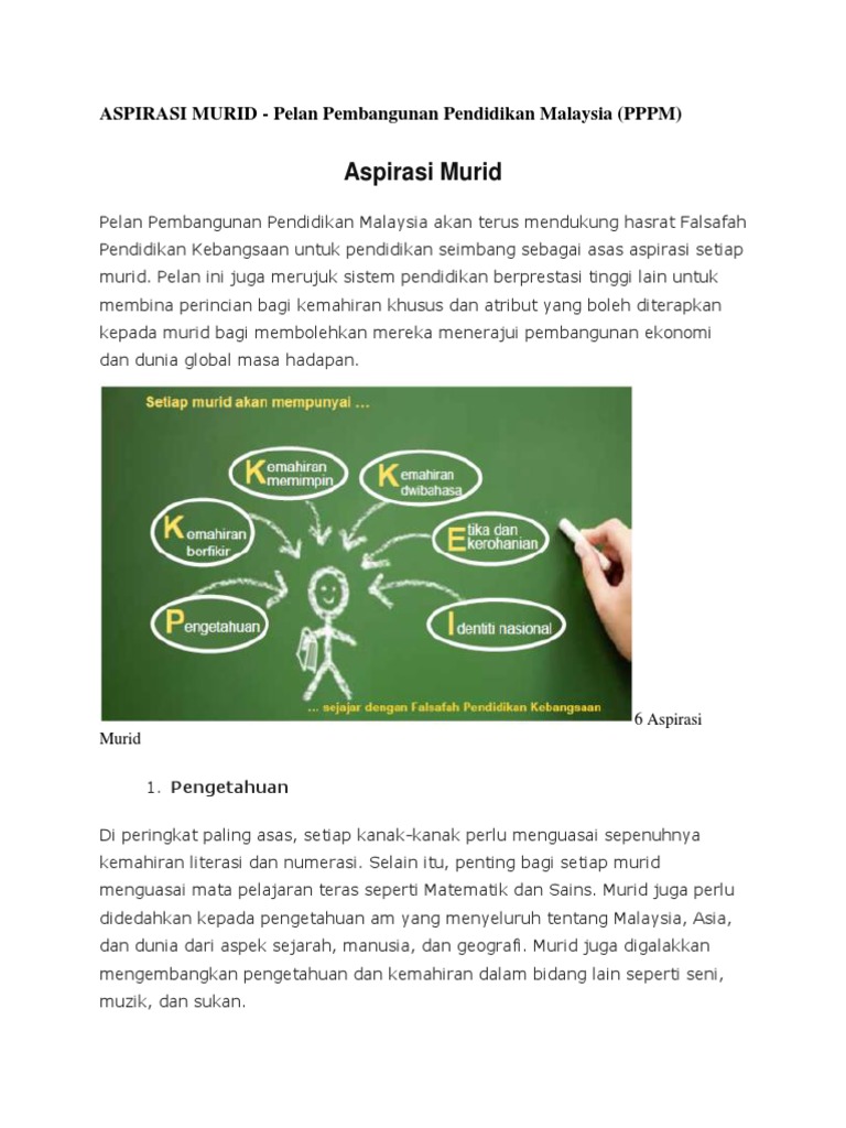 Aspirasi Murid Pelan Pembangunan Pendidikan Malaysia Pppm