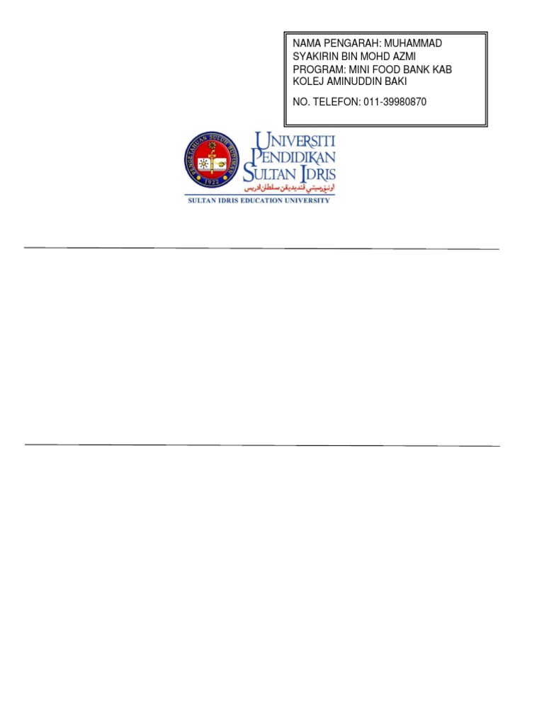 Nama Pengarah Muhammad Syakirin Bin Mohd Azmi Program Mini Food Bank Kab Kolej Aminuddin Baki No Telefon 011 39980870