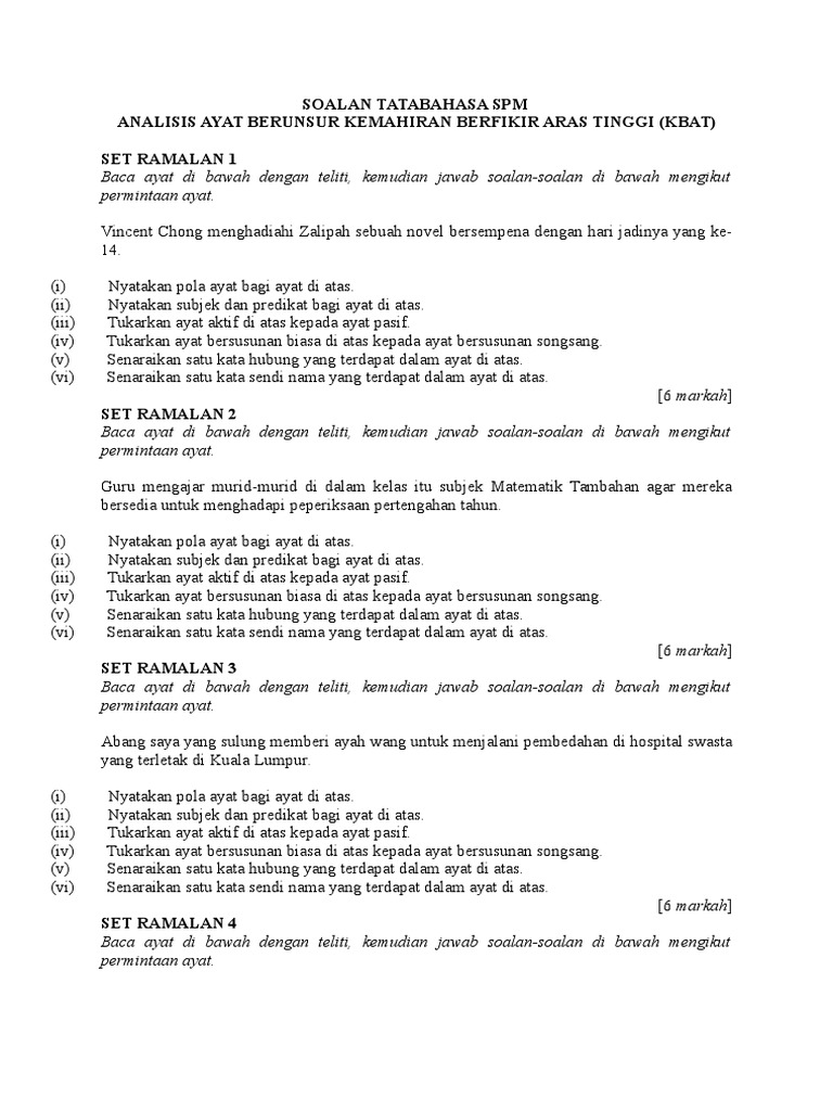 Soalan Tatabahasa Spm Analisis Ayat Tatabahasa Spm Menghadapi Peperiksaan Pertengahan Tahun I 3 Set Ramalan 7 Baca Ayat Di Bawah Dengan Teliti Pdf Document