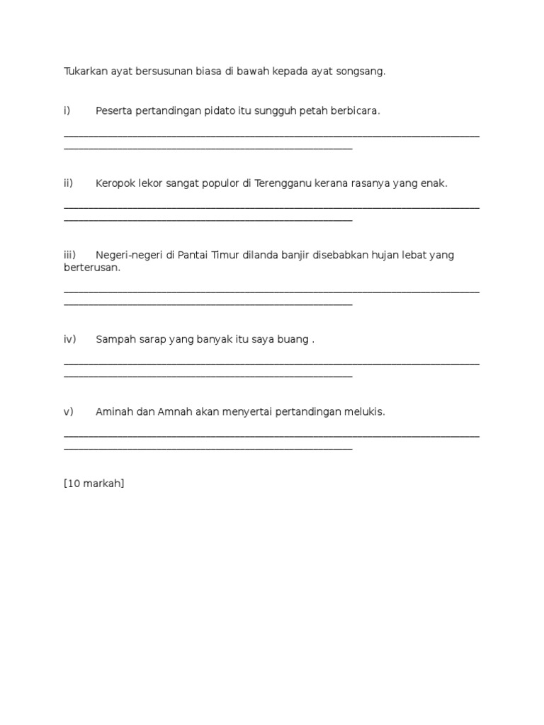Latihan Tatabahasa Menukar Ayat Bersusunan Biasa Kepada Ayat Bersusunan Songsang Latihan Tatabahasa Menukar Ayat Bersusunan Biasa Kepada Ayat Bersusunan Songsang