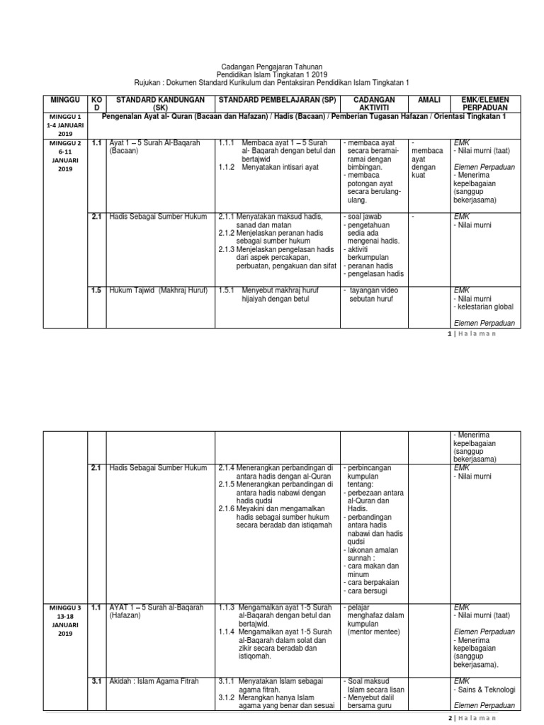 Rpt Pendidikan Islam T1 Pdf Document