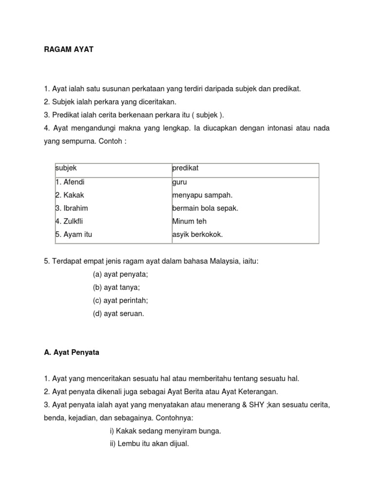 Jenis Jenis Ayat Bahasa Melayu Bahasa Jenis Membaca