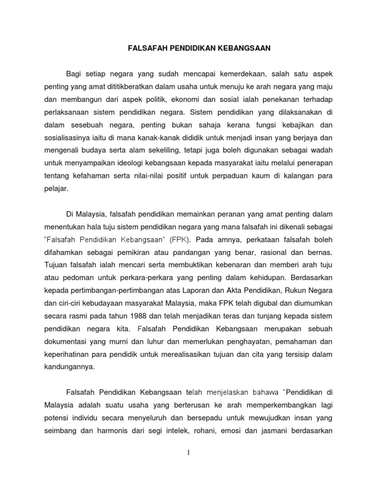 Falsafah Perkembangan Pendidikan Di Malaysia Pdf Document