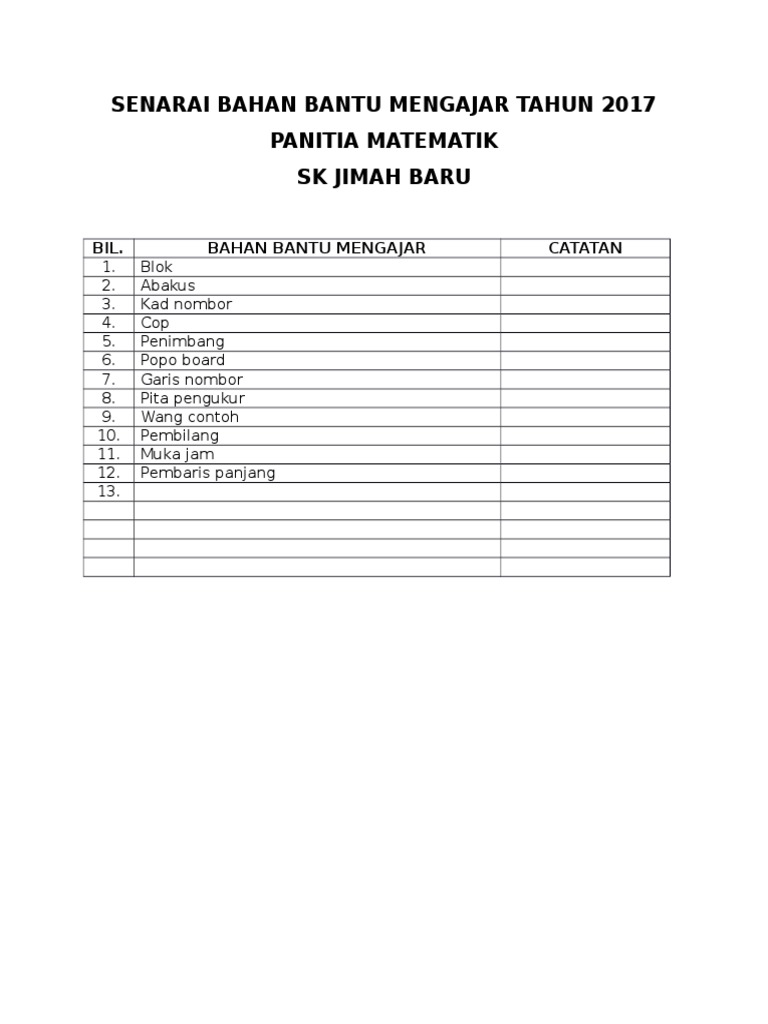 Senarai Bahan Bantu Mengajar Tahun 2017