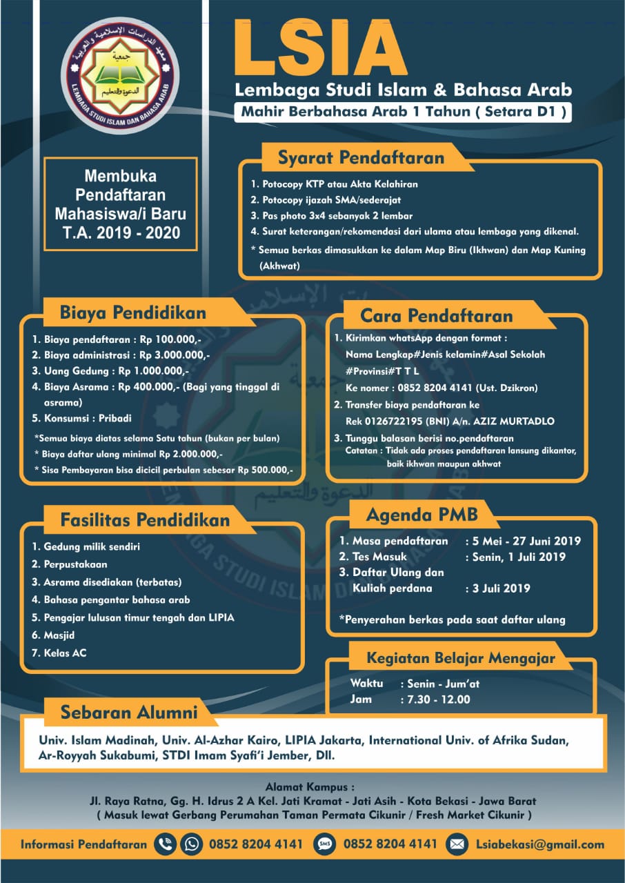 Pendaftaran Ma Had L Sia Tahun 2019 2020 Mahir Berbahasa Arab 1 Tahun Pangestupas Mari Belajar Ilmu Syar I