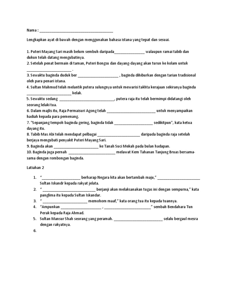 Nordarshima blogspot my item penulisan upsr bahasa. Sebagai contoh wangsa seuna yang pernah memerintah negeri karnataka menggunakan bahasa kannada bukannya bahasa sanskrit sebagai bahasa istana atau bahasa arab yang menjadi bahasa istana di parsi. Ramalan soalan bina ayat bm spm 2012 2012 spm bahasa melayu ramalan. Contoh bahasa istana pt3 bahasa melayu bm.
