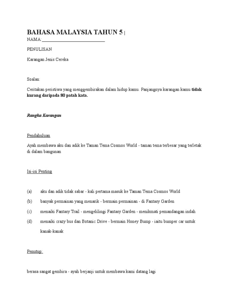 Bahasa Melayu Isi Isi Ringkas Karangan Upsr Doc 60 Contoh Karangan Menggunakan 10 Ayat Mudah Tema Keluarga 1 Tuliskan Sebuah Karangan Yang Bertajuk Course Hero