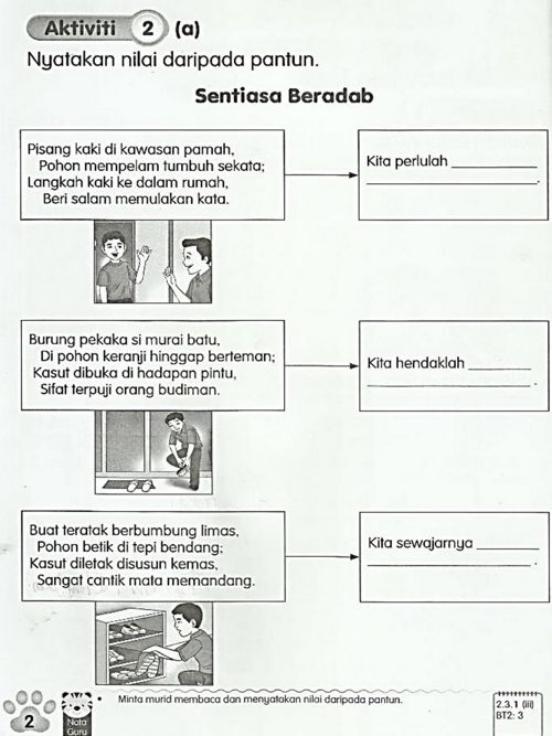 Sekiranya terdapat apa apa kesalahan sila beritahu saya. Baca buku teks dan berikan respons terhadap soalan. Buku teks bm. Lengkapkan latihan dalam buku aktiviti jilid 2 halaman 1 dan 2.