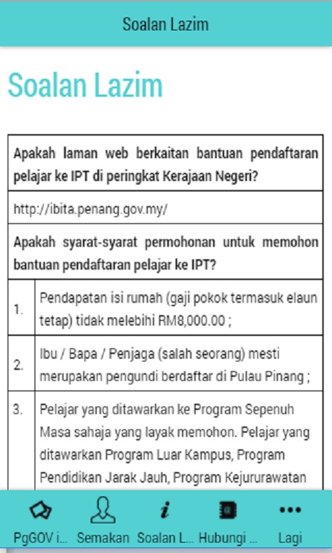 Sistem bantuan pendaftaran pelajar ke institut pengajian tinggi negeri pulau pinang. Berita bainya semua layak untuk memohon walau bagaimanapun keputusan adalah tertakhluk kepada budibicara kerajaan negeri pulau pinang.