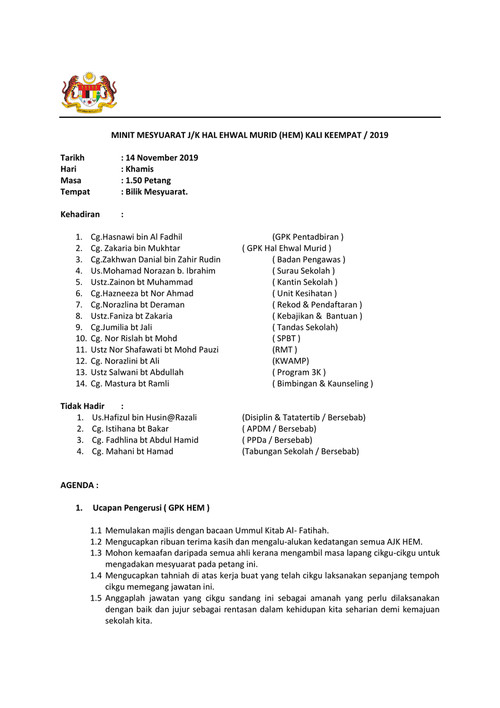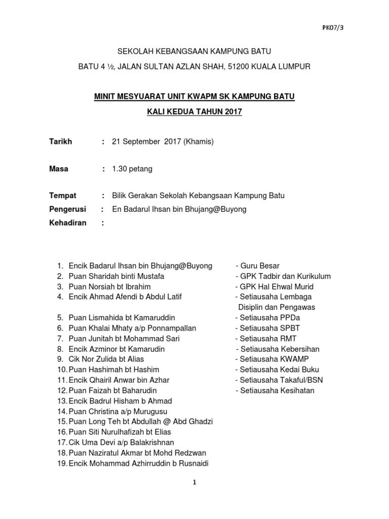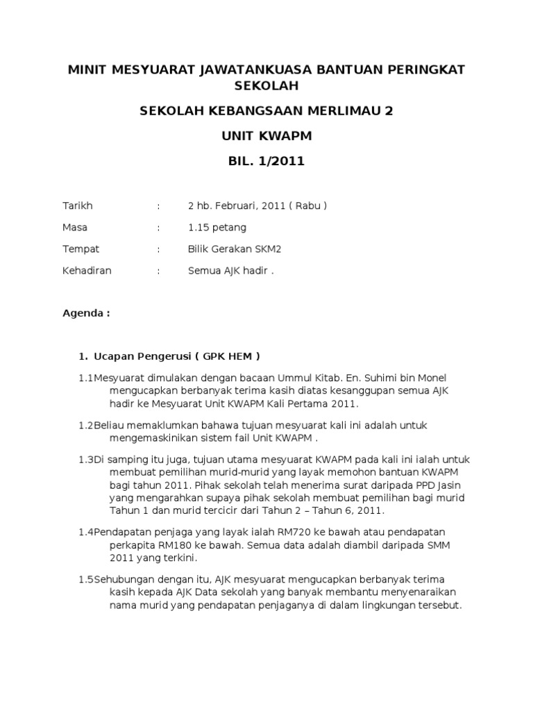 Minit Mesyuarat Jawatankuasa Bantuan Peringkat Sekolah Pdf Free Download