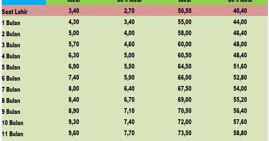 Kenaikan Berat Badan Bayi Ideal Menurut Kms Usia 0 12 Bulan