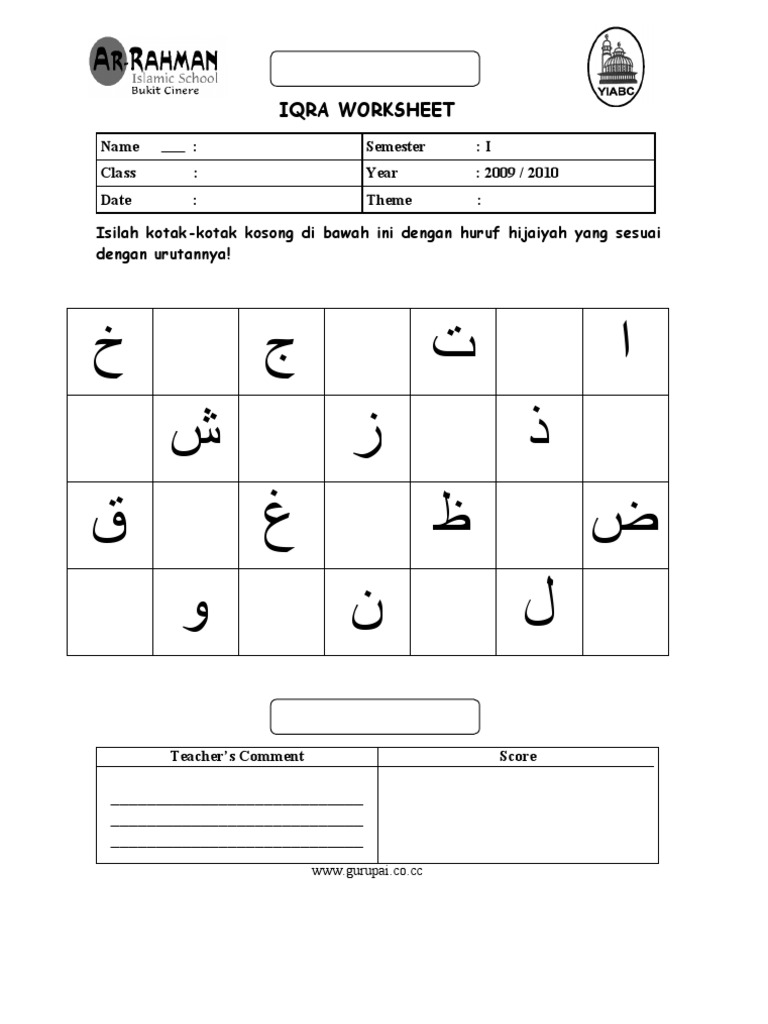 Lembaran Kerja Pra 2016 Hijaiyah Doc Document
