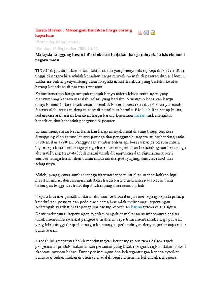 Berita Harian Menangani Kenaikan Harga Barang Keperluan Written By Administrator