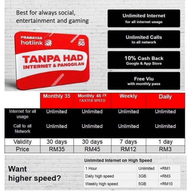 Unlimited Data Hotlink Sim Card 1 Month For All Type App Shopee Malaysia