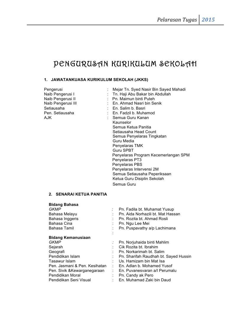 Rosmah Senarai Tugas Ketua Panitia Mata Pelajaran
