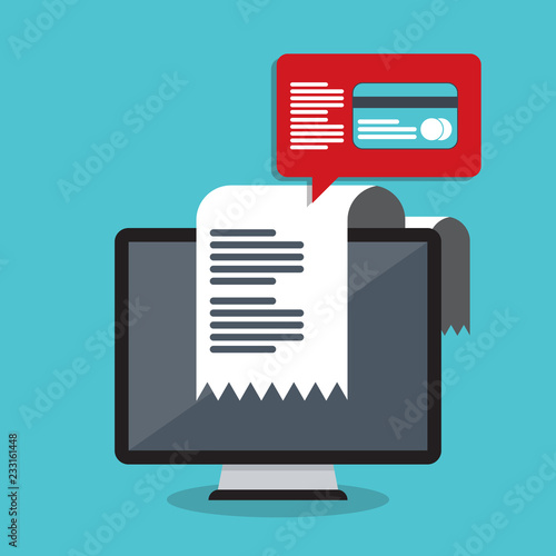 Online Payment On Computer Vector Illustration Flat Cartoon Big Pay Bill Tax Vi Ad Vector Illustrat Computer Vector Online Payment Financial Accounting